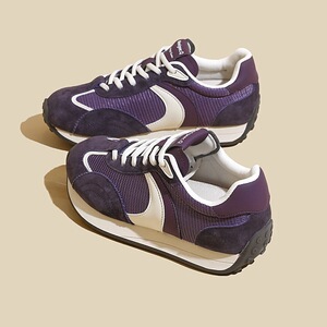 复古显脚小德训鞋女2025夏季新款网面拼色休闲运动板鞋百搭老爹鞋