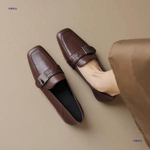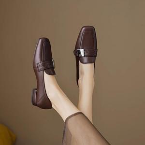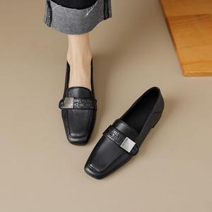 牛皮低跟英伦风乐福鞋女平底2025春秋季新款百搭方头单鞋