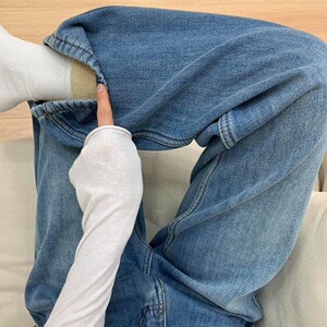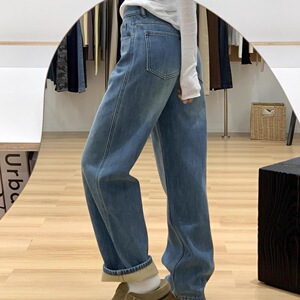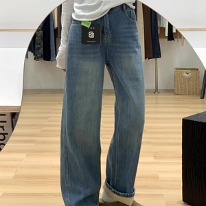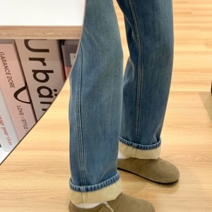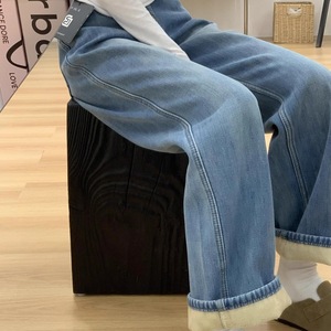 直筒牛仔裤2025冬季加绒加厚新款大码高腰宽松梨形显瘦拖地阔腿裤