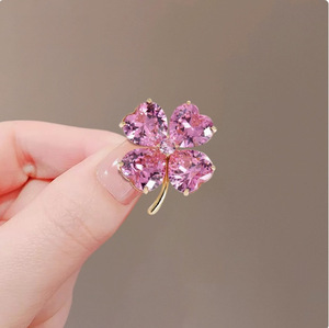 精致时尚粉色幸运四叶草胸针女高端衣服别针高级感轻奢胸花配饰品
