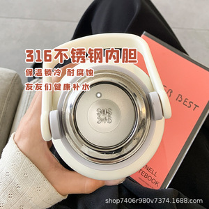 简约保温杯大容量带盖可喝水杯高颜值手提便携水壶316不锈钢杯子