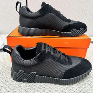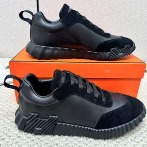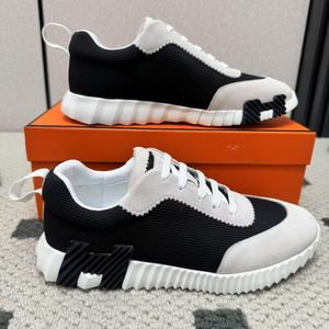 H家休闲运动鞋真皮夏季透气系带男鞋黑色磨砂飞织网面女外贸跨境