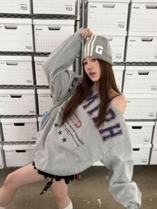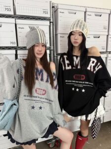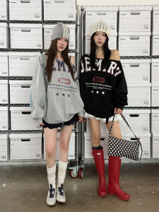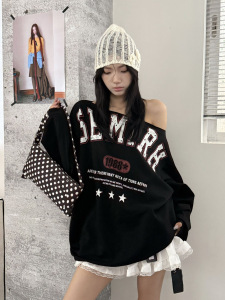 ME KAKAMEE十三行秋季美式复古字母斜肩大版宽松卫衣上衣女 S3532