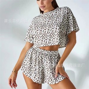 跨境爆款欧美家居服豹纹印花时尚睡衣短裤睡衣女