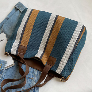包包女大容量新款女包帆布大学生上课条纹包通勤托特包斜挎包
