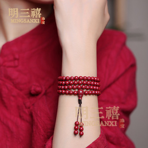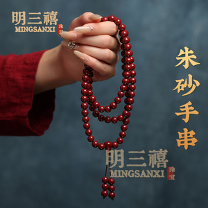 朱砂108颗多圈素圈手串紫金砂男女本命年佛珠朱砂108手链低含