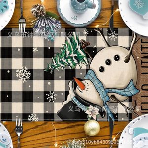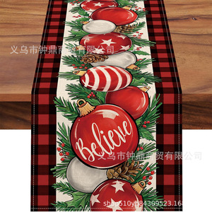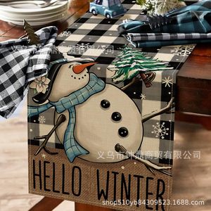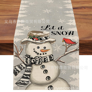 亚马逊爆款圣诞节桌旗亚麻材质雪人印花美式圣诞节餐桌装饰桌布