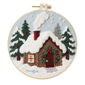 雪屋 手工刺绣diy材料包初学手工简单DIY英文图解布艺圣诞节跨境