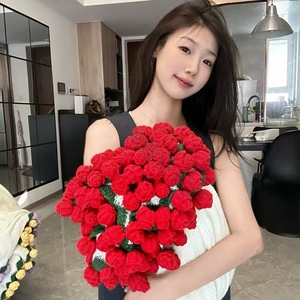 成品手工编织玫瑰花束毯子花毯毛线午睡毯毯子送女友闺蜜七夕礼物