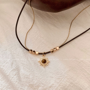 虎眼石双层太阳项链女高级感美拉德复古颈链气质轻奢配饰毛衣链