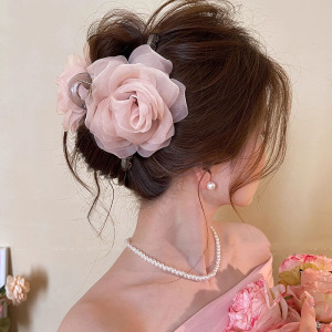 玫瑰花朵抓夹女高级感新款发饰鲨鱼夹盘发夹抓夹