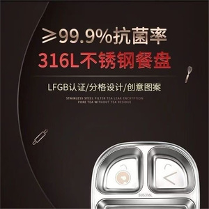 316不锈钢通用餐盘分格加深学生盘子学校儿童吃饭餐具防摔食品级