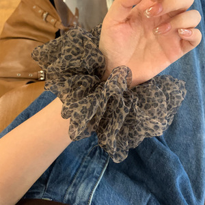 韩系蓬松慵懒风豹纹网纱大肠发圈女高级感马尾辫头绳发饰头花头饰