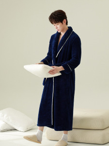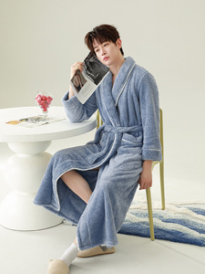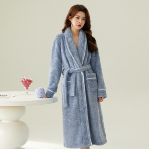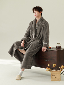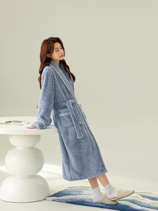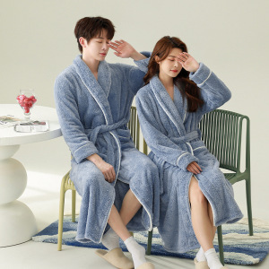 珊瑚绒浴袍秋冬季情侣睡袍女士加厚法兰绒男士晨袍加长款长袍批发