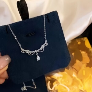 S925纯银梦幻蕾丝流苏水滴项链女轻奢小众设计感百搭新款流苏吊坠