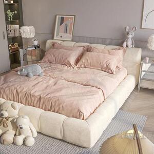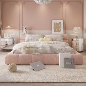 奶油风泡芙床双人网红面包床主卧大床现代简约榻榻米布艺床实木床
