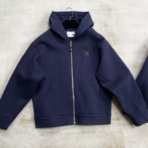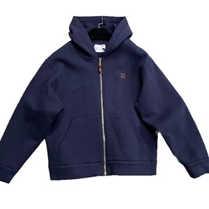 原标MIU缪家网红款徽标LOGO皮标藏青色太空棉连帽夹克外套男女