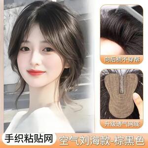 【无需发夹】刘海假发前额头顶手织补发片超薄蓬松透气魔术贴发片