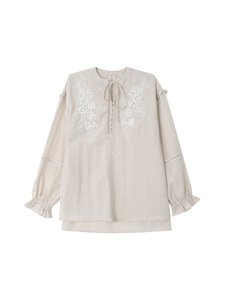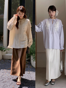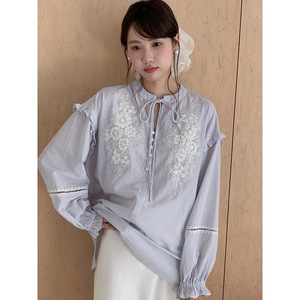 【巨重工 落日灯塔】法式复古刺绣衬衫女秋季新款长袖上衣T1971F