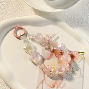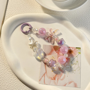 创新糖果镀彩蝴蝶结串珠手机链手机挂绳弹簧圈手机壳挂件DIY配饰