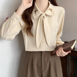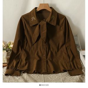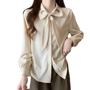 百搭刺绣系带法式长袖衬衫女2025秋季新款设计感胖mm遮肚上衣藏肉