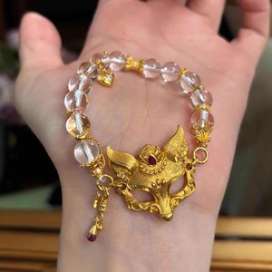 【澜焰狐面】黄金色小狐狸面具吊坠项链仿白水晶手串戒指项链配饰