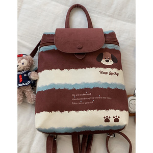 韩版可爱卡通手提水桶包包女2025新款豹纹双肩包学院风学生书包