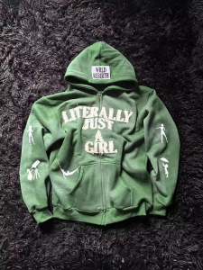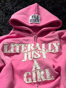 美式Y2K嘻哈字母3D印花连帽衫个性街头男女款宽松拉链开衫上衣