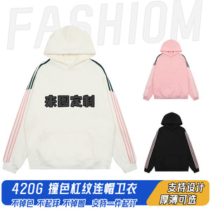 卫衣定制聚会活动企业团体服班服撞色三条杠条纹连帽秋冬款广告衫