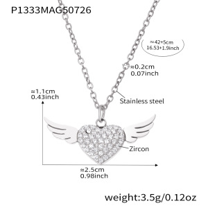谜丽欧美风跨境满钻爱心锆石翅膀双层锁骨项链不锈钢18K真金首饰
