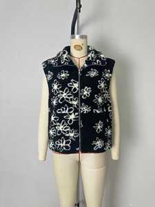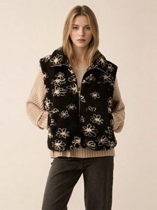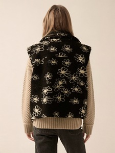 欧美时尚翻领花朵印花羊羔毛女装冬季设计感皮毛一体无袖马甲外套