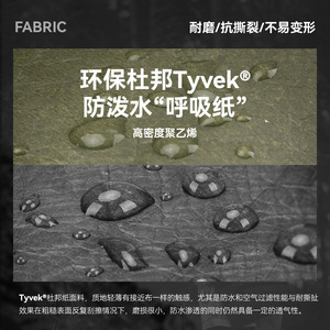 表层:高密度聚乙烯贴合PP无纺布底 里布:涤纶