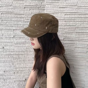 批发25年早秋新款高货平顶军帽夏季破坏韩版帽子遮阳防晒透气出游