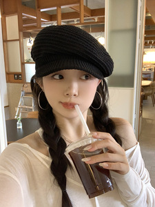 黑色贝雷帽子女2025新款大头围百搭显脸小报童帽画家帽
