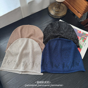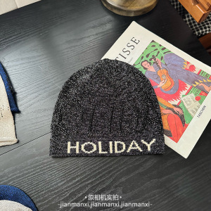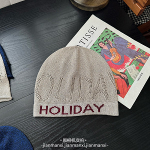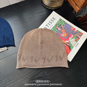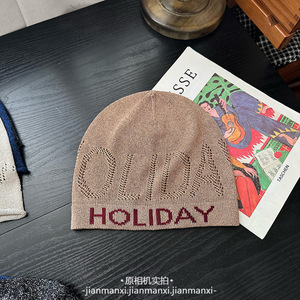 小众个性街头字母韩版套头冷帽女秋冬潮牌情侣毛线帽针织帽显脸小