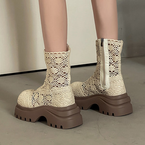 韩版厚底精致蕾丝网纱凉靴秋冬时尚仙女风设计感镂空女士马丁靴子