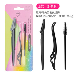 新款430不锈钢眉毛夹眉刷套装多功能双头眉夹眉梳美妆工具3件套