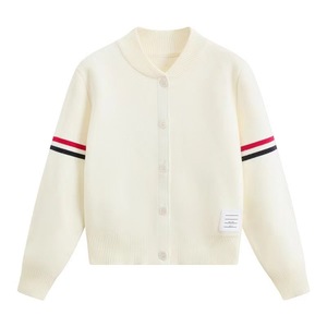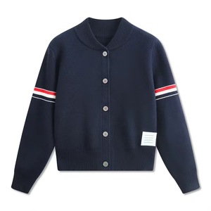 秋冬韩式半高领开衫学院风棒球服彩色织带条纹长袖针织毛衣女外套