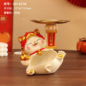 锦鲤招财猫玄关钥匙收纳摆件家居客厅新居乔迁装饰树脂工艺品礼物