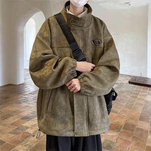 美式麂皮绒外套男春秋季vibe风衣夹克潮牌痞帅日系复古外套男夹克