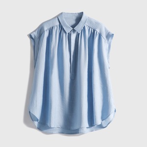 【一见倾心】老钱松弛感 清爽减龄纯色亚麻翻领压褶衬衫夏季新款