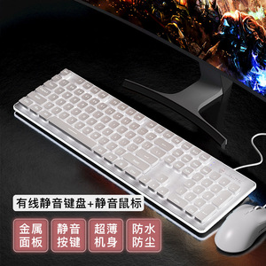 白色白光【有线静音键盘+办公鼠标】