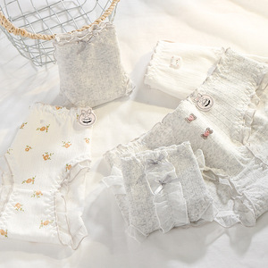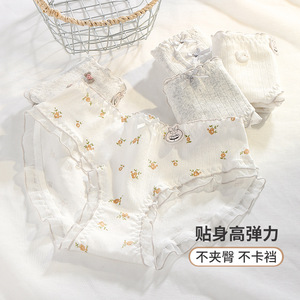 云感棉卡通印花少女内裤10A抗菌内裆无痕蕾丝裤边弹力包臀女内裤