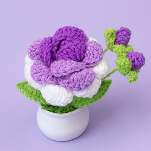 成品跨境毛线编织玫瑰花手工钩织盆栽桌面车载摆件情人节礼物