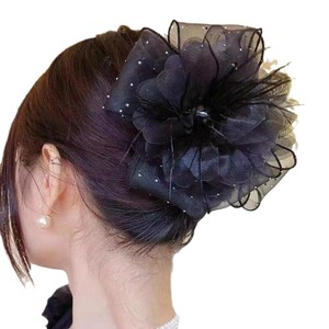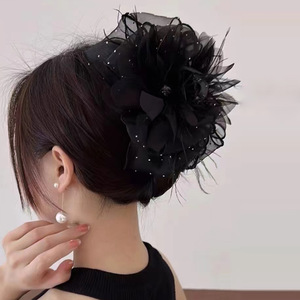2025新款满天星花朵羽毛抓夹女发夹后脑勺夹子头饰高端鲨鱼夹发卡
