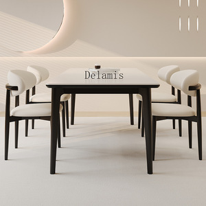 德利丰实木岩板餐桌黑色白蜡木客厅家用小户型现代简约饭桌椅组合