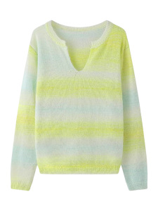 草绿色渐变针织衫T恤女2025夏日莫兰迪色穿搭多巴胺独特绝美上衣