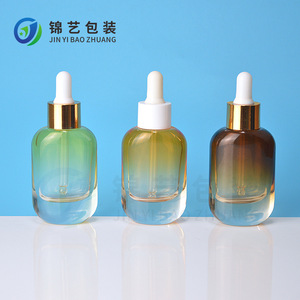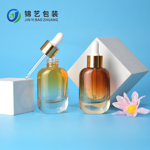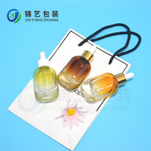 现货新款30ml扁方滴管精油瓶透明厚底精华原液玻璃瓶化妆品分装瓶