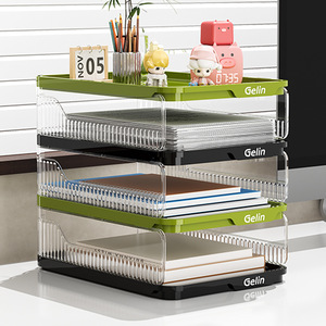 桌面文件收纳盒多层分格可叠加透明置物架a4资料框办公室整理盒子