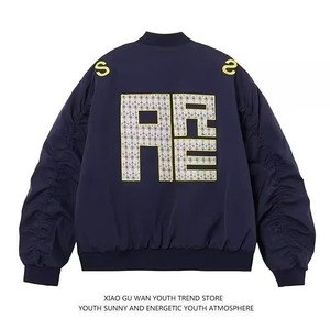 春秋季街头藏青色飞行夹克高级感痞帅工装刺绣外套潮牌棒球服夹克